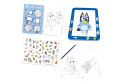 Cria os teus desenhos Bluey com a mesa de luz, dá-lhes cor e decora-os com os adesivos!